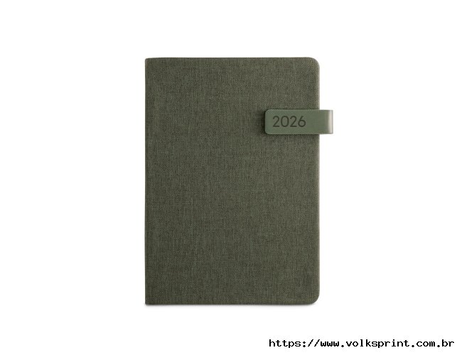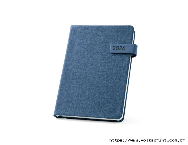 Agenda A5 em PET reciclado (100% rPET), com fecho magnético em PU. Possui um marcador em fita e suporte para esferográfica (não inclusa). Está organizada num plano diário. Fornecida com bolsa de non-woven. 148 x 210 mm | Bolsa: 205 x 250 mm