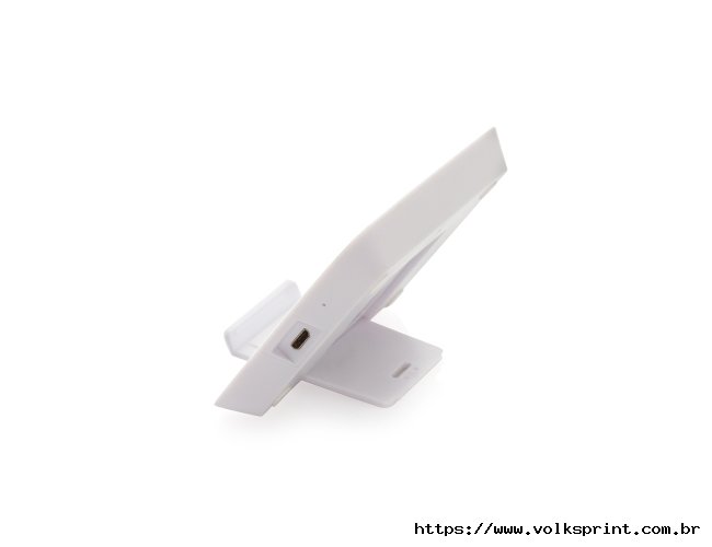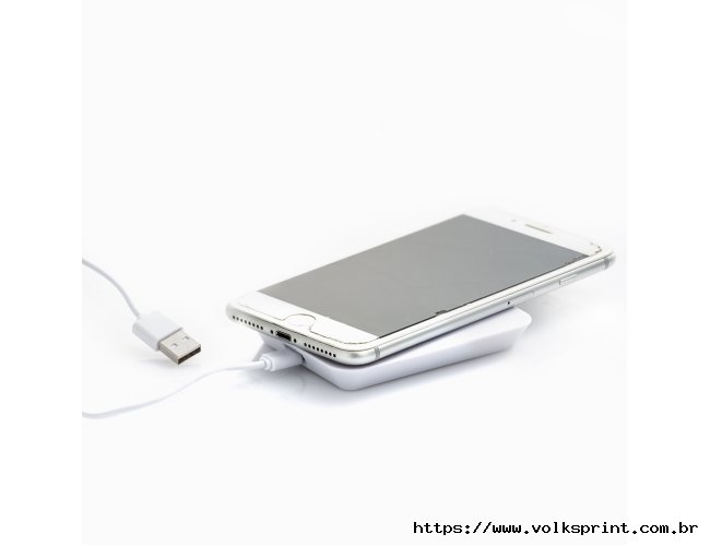 arregador por indução com suporte para celular, base com borrachas antiderrapantes na área inferior. Acompanha cabo USB. Obs.: O dispositivo não armazena carga (não possui bateria interna), apenas transfere carga quando conectado à uma fonte de energia.