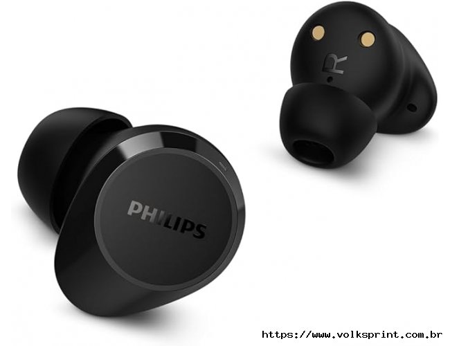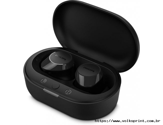Fone de ouvido sem fio TWS Philips TAT1209BK/00 na cor preto, com bluetooth, microfone, tecnologia IPX4 e 18 horas de reprodução.